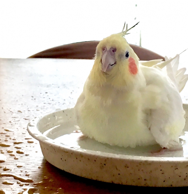 水浴びが好きなインコにとっては、楽しい遊びであり、ストレスの発散になります。