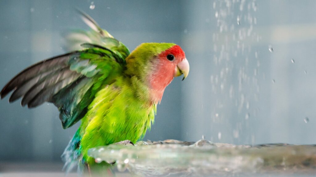 とくに冬場は、水浴びをする部屋を十分に暖めておくことが重要です。インコは寒さに強くない個体がほとんどですので気を付けましょう。