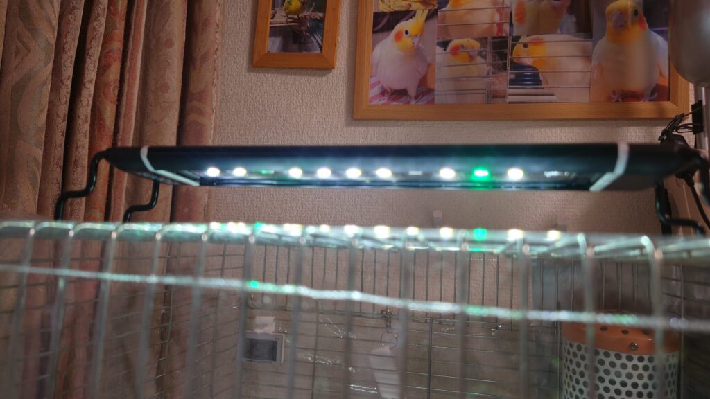 【環境】 部屋全体を明るくするほどではないときでも、手軽にケージ内を部分的に明るくすることができます。インコは昼行性のため、適切な明るさは重要です。また、愛鳥の食欲不振時など深夜でも採餌行動を促したい場合など、ケージ内の明るさを適切に保つことができ便利です。できれば明るさを調節できるタイプがおすすめです。(経験上、熱帯魚飼育用がベストマッチ)