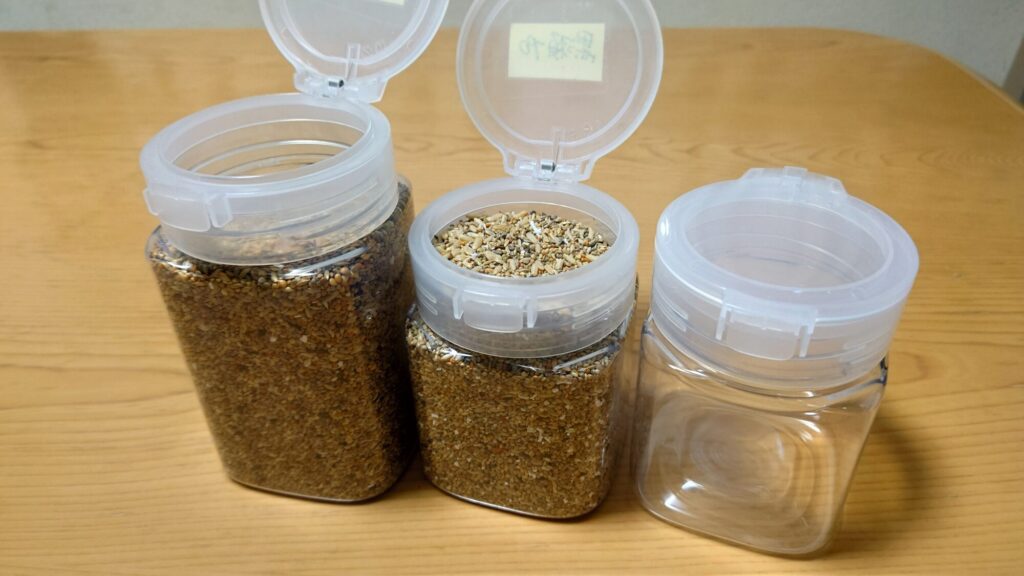 【鮮度保持】 大袋で買ったエサを小分けにし、密閉して保存することで、エサの鮮度と風味を保ち、虫の発生を防ぎます。また、手ごろなサイズのボトルに保管することで、給餌ごとにいちいち大袋から出し入れする手間がなく便利です。なお、合わせて乾燥材を活用しましょう。